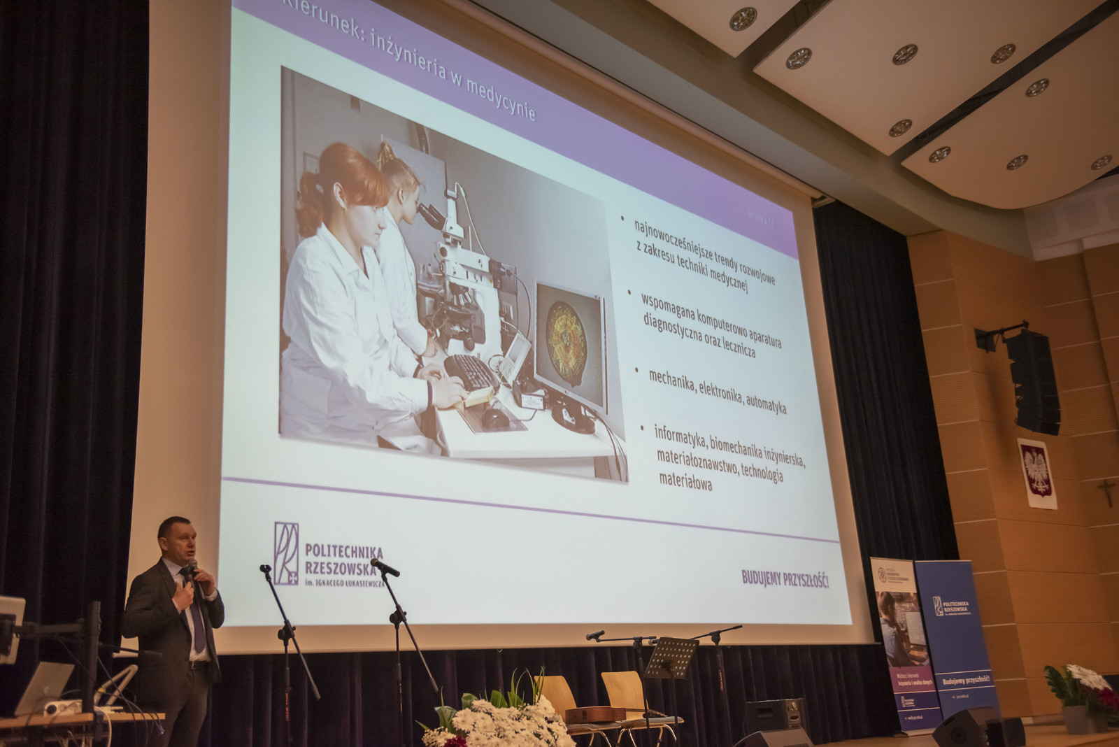 Podczas obu dni zgromadzoną młodzież uroczyście powitali rektor Politechniki Rzeszowskiej prof. dr hab. inż. Piotr Koszelnik oraz prorektor ds. kształcenia dr hab. Iwona Włoch, prof. PRz. Władze dziekańskie WMiFS w krótkiej prezentacji przedstawiły kierunki studiów prowadzone na wydziale oraz perspektywy zatrudnienia absolwentów. Inauguracje Dni Otwartych uświetniły występem artystycznym studentki kierunku matematyka Katarzyna Biela i Klaudia Bukała. Młodzież miała okazję uczestniczenia w wykładach i warsztatach, które zostały podzielone na trzy główne panele związane z kierunkami studiów: inżynierią i analizą danych, inżynierią w medycynie oraz matematyką. Panele zostały uzupełnione o pokazy z fizyki, a także o zwiedzanie wydziałowych laboratoriów oraz biblioteki. Wykłady, warsztaty i pokazy prowadzili nauczyciele akademiccy prowadzący zajęcia na wymienionych kierunkach, lekarze oraz pracownicy zaprzyjaźnionych dwóch firm medycznych ImplantCast i STRING, jak również studenci kół naukowych: Machine Learning, X-med oraz Foton. Podczas Dni Otwartych aktywny udział wzięli studenci z Wydziałowego Samorządu Studenckiego oraz studenci WMiFS, którzy chętnie opowiadali uczniom o studiach w trakcie zwiedzania wydziału.