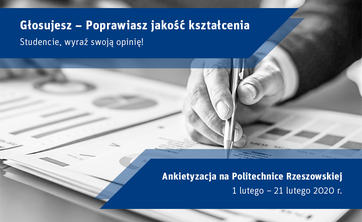 W dniach od 1 lutego do 21 lutego 2020 r. na PRz prowadzona jest ankietyzacja. Zachęcamy do wypełniania badań ankietowych na stronie usos.prz.edu.pl.