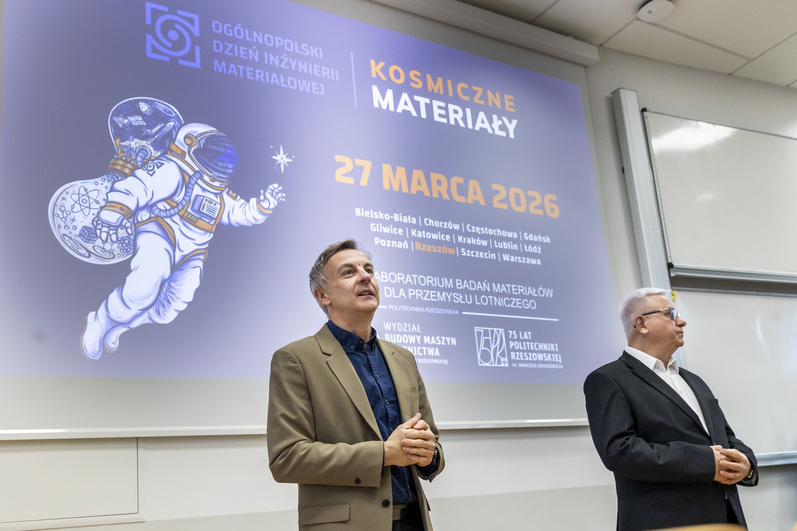 Uczestników wydarzenia przywitali dziekan Wydziału Budowy Maszyn i Lotnictwa dr hab. inż. Adam Marciniec, prof. PRz oraz przewodniczący Rady Dyscypliny Inżynieria Materiałowa dr hab. inż. Maciej Motyka, prof. PRz. Głównym punktem programu był wykład pt. Nie taka całkiem pusta przestrzeń – co grozi podróżnikom w kosmosie i jak ich chronić?”, który wygłosił dr hab. inż. Gaweł Żyła, prof. PRz. Podczas prelekcji uczestnicy poznali rzeczywiste zagrożenia występujące w przestrzeni kosmicznej, ze szczególnym uwzględnieniem promieniowania kosmicznego i jego wpływu na organizmy żywe. Omówiono podstawowe mechanizmy oddziaływania promieniowania jonizującego oraz czynniki decydujące o jego dawce, takie jak czas ekspozycji, odległość od źródła oraz zastosowana osłona.