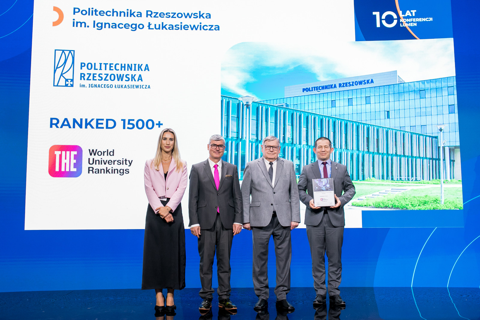 Politechnika Rzeszowska otrzymała nagrodę przyznawaną polskim uczelniom sklasyfikowanym w prestiżowym rankingu Times Higher Education World University Rankings 2025. Wręczenie odbyło się podczas uroczystej gali towarzyszącej jubileuszowej konferencji LUMEN 2024, a nagrodę odebrał prorektor ds. studenckich i umiędzynarodowienia dr hab. inż. Bartosz Miller, prof. PRz.