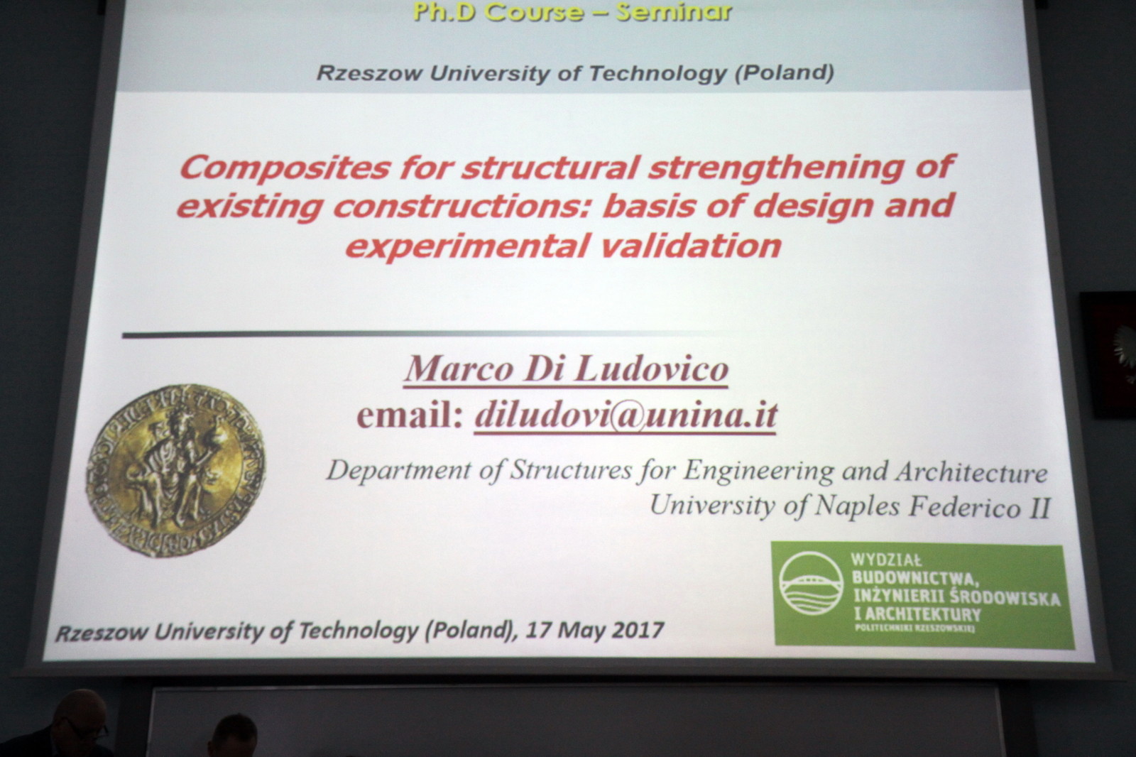 Od 15 do 17 maja br. gościem Politechniki Rzeszowskiej był prof. Marco Di Ludovico z Uniwersytetu Neapolitańskiego im. Fryderyka II. Naukowiec odwiedził naszą uczelnię w ramach programu Erasmus+. Podczas pobytu na PRz profesor spotkał się z prof. dr. hab. Grzegorzem Ostaszem, prorektorem ds. współpracy międzynarodowej, oraz dr. hab. inż. Tomaszem Siwowskim, prof. PRz. Rozmawiano o rozszerzeniu współpracy pomiędzy uczelniami i wymianie studenckiej. Ponadto na Wydziale Budownictwa, Inżynierii Środowiska i Architektury naukowiec wygłosił wykład pt. Composites for structural strengthening of existing constructions: basis of design and experimental validation.