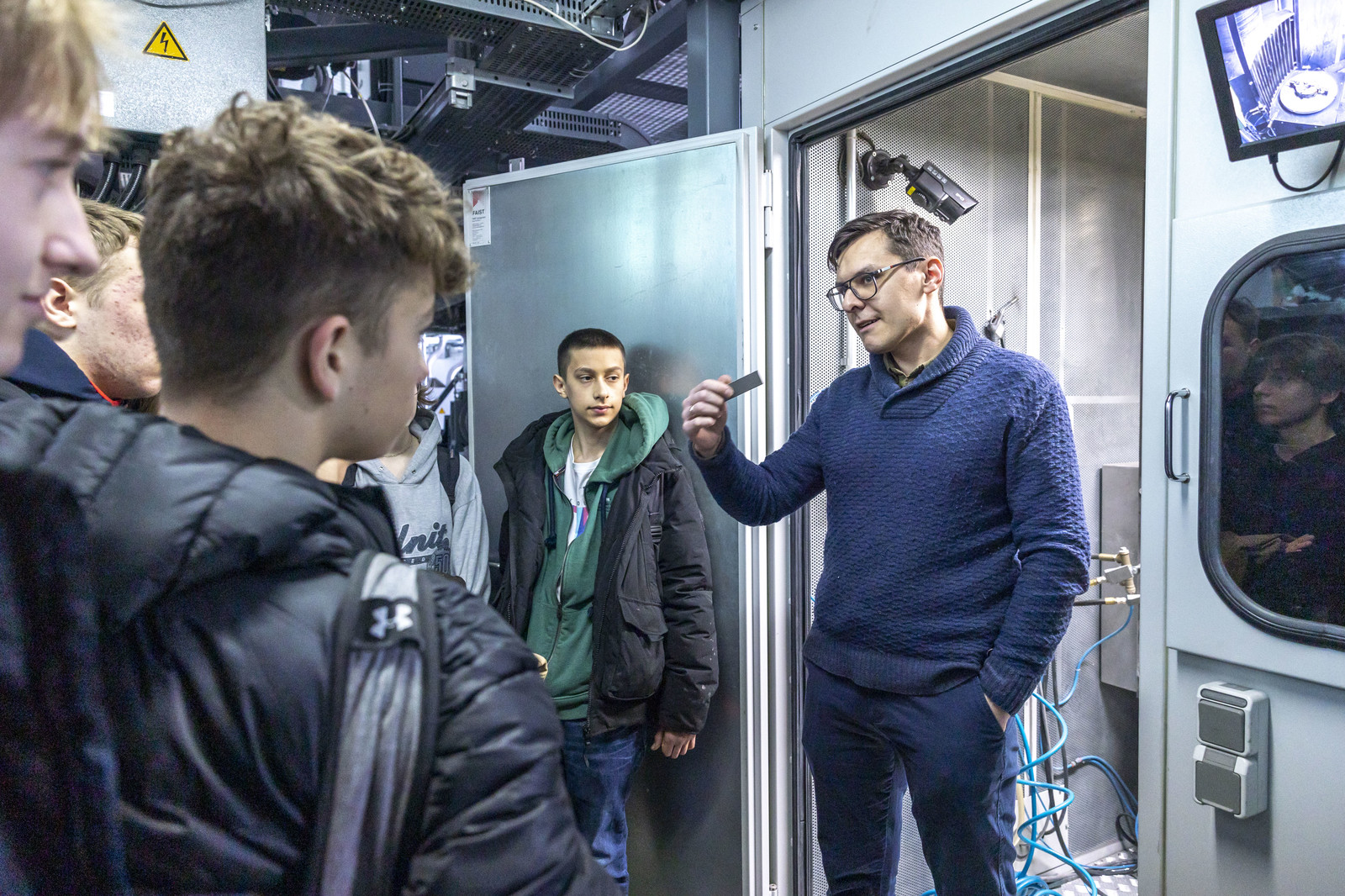 Organizatorzy zadbali również o możliwość kontaktu z przedstawicielami przemysłu. O znaczeniu inżynierii materiałowej dla przemysłu lotniczego czy motoryzacyjnego opowiedzieli absolwenci kierunku inżynieria materiałowa, obecnie pracownicy tak znanych firm, jak Pratt & Whitney Rzeszów czy BorgWarner Poland. Można było zobaczyć i dotknąć elementów konstrukcji silników lotniczych czy przekładni automatycznych stosowanych w nowoczesnych samochodach. Młodzież miała okazję dowiedzieć się, czym zajmują się inżynierowie materiałowi i na czym polega ich praca.